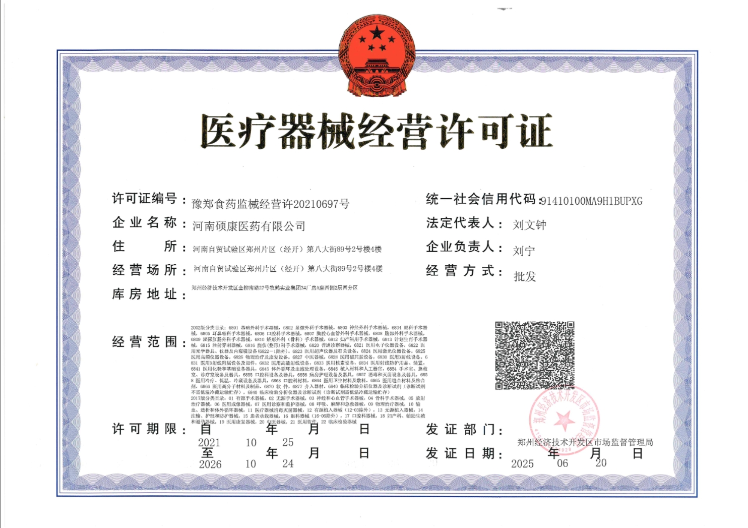 三类医疗器械经营许可证